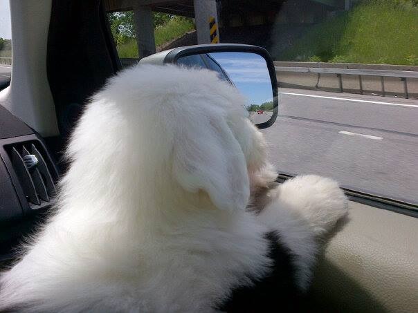 Sam is adorable! I made sure he had plenty of hugs before he left Canada. He was an angel at the Shindig on Sunday. Teddy checked him out for a second and then went back to his bird watching. Cindy |