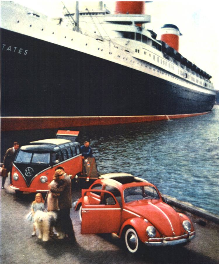 | That is kind of a crazy picture when you look at all the details. The van is backed up almost into the water. The huge ship is nearly on top of them. All that water and a child is unattended while the 2 adults are smooching....and the OES is just standing on his lead, probably wishing someone would do something! |